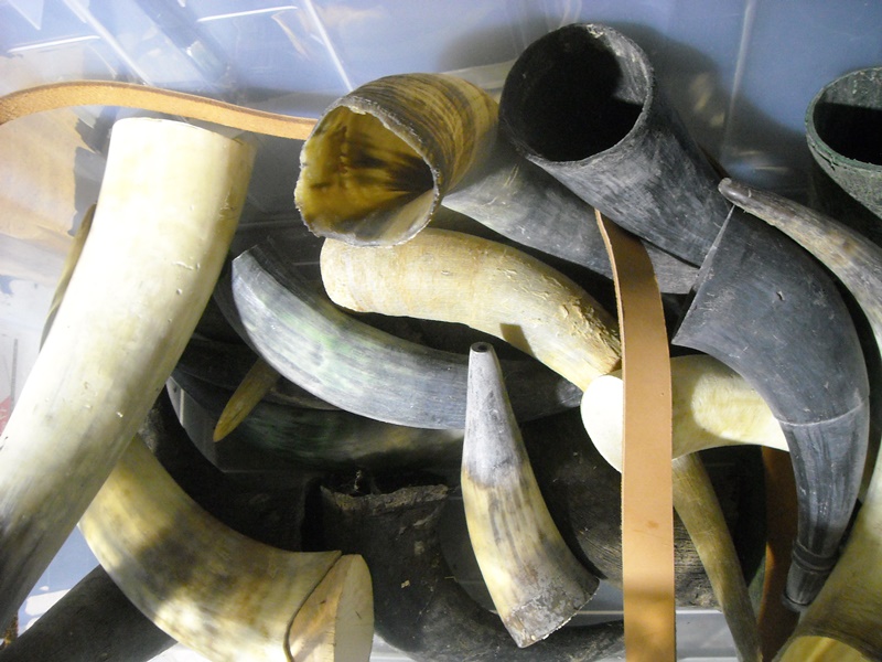That funny shaped horn at 6 o'clock is probably going to wind up getting smushed. It reminds me of a carved flattened horn I saw in a museum years ago, and I think it would be an interesting project to flatten and carve it.